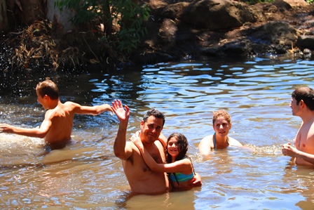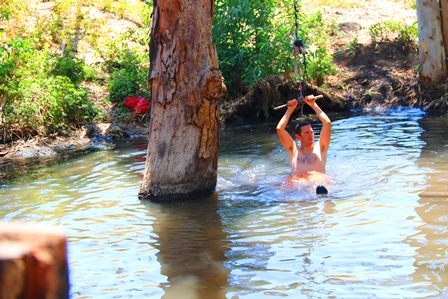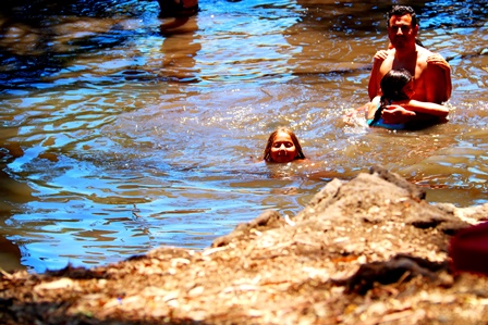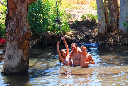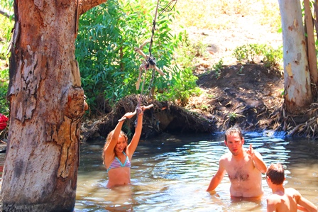 החלטנו להכנס למים הצוננים אשר הגיעו על למותני וכמובן שהילדים הצטרפו עלינו והלכו להתנדב עם הנדנדה שתלויה על העץ.