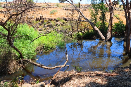איך מגיעים: נוסעים בכביש 808, כ-350 מטרים מצפון לצומת אניעם, היכן שערוץ נחל חוצה את הכביש, מחנים את המכונית בצד הכביש. הולכים מערבה, נכנסים בפירצה בגדר מכלאת בקר והולכים בשביל לעבר קבוצת עצי האיקליפטוס.