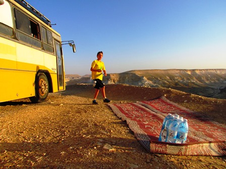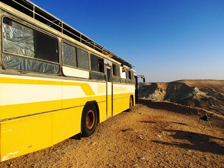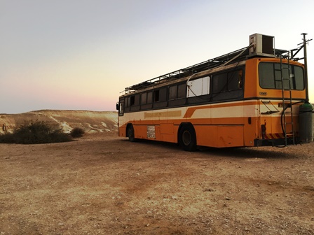 יצאנו בשעות הצהריים מהמרכז לכיוון מדרשת בין גוריון שם האוטובוס שוכן ביום יום, קבענו עם פרח בעלת האוטובוס במקום העצמו נכנסו לאוטובוס וההתלהבות היתה בשיאה.