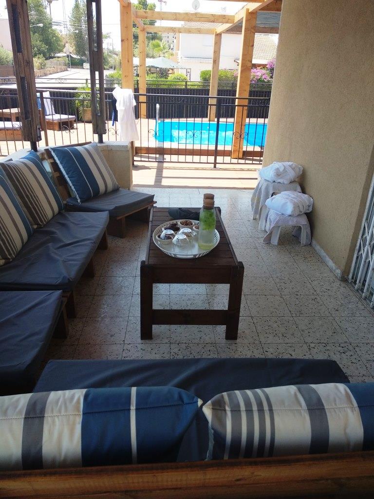 יש במקום פינות ישיבה חמודות ומיטת שיזוף